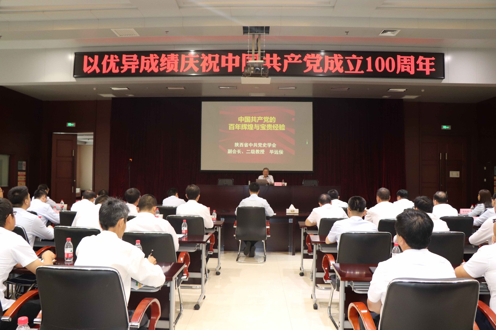 庆祝活动上,全体党员和干部聚精会神地聆听了由陕西省党史学习教育宣讲团成员、陕西省纪念中国共产党成立100周年主题展专家组成员毕远佞教授,讲授的题为《中国共产党的百年辉煌与宝贵经验》的党课,一幕幕党的奋斗历程,鼓舞人心。一件件可歌可泣的事迹,催人奋进。为公司党员和干部注入了丰厚营养。为把汲取的丰厚营养,及时化为前行的力量,三秦环保股份公司党总支书记讲授了题为《坚定信心 乘势而上 奋力谱写三秦公司发展新篇章》的党课,以“传承红色基因、汲取奋进力量,把握当前形势、抢抓发展机遇,深化企业改革、激发发展活力,咬定目标任务、抓好工作落实”等为主要内容,动员党员和干部率先垂范、奋勇前进,全力推动企业发展上水平、上台阶。