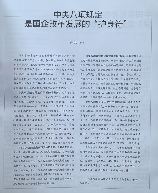 日前出版的《国企》杂志刊发了BETVLCTOR伟德国际1946集团党委副书记、董事、总经理宋世杰同志文章《中央八项规定是国企改革发展的“护身符”》。现刊载如下,以飨读者。